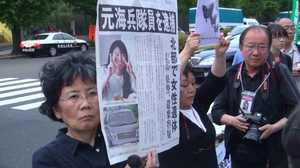 25日、沖縄で島袋里奈さん(20)が米軍属(元海兵隊員)によって暴行殺害のうえ死体遺棄された事件を受け、首相官邸前で「沖縄・一坪反戦地主会関東ブロック」主催の「5・25元米海兵隊兵士による女性殺害官邸前緊急抗議行動」が緊急開催された。
